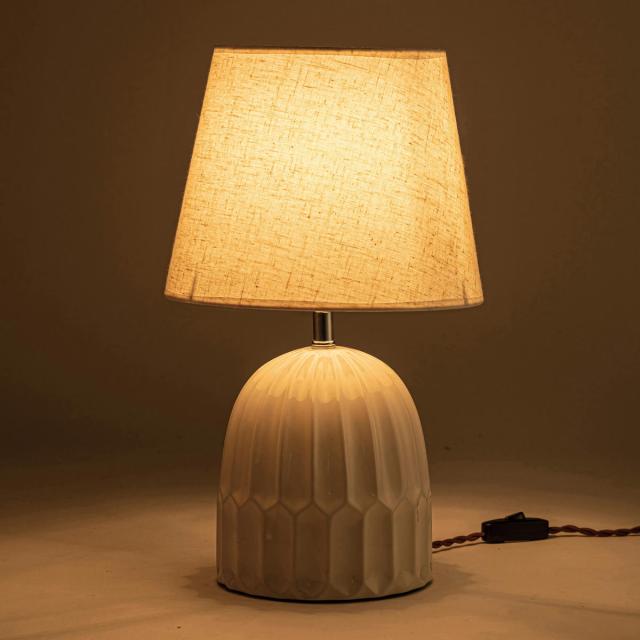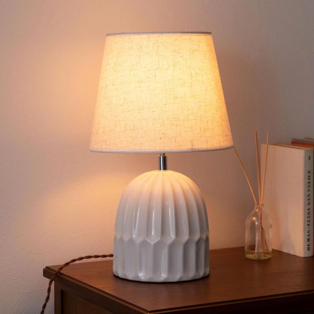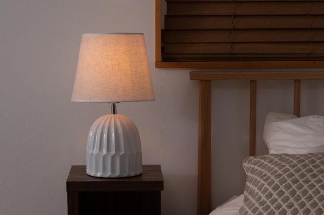 温もりのある陶器の質感と、優しい布シェードが空間にやさしく溶け込み、インテリアに上質なアクセントをプラスします。
