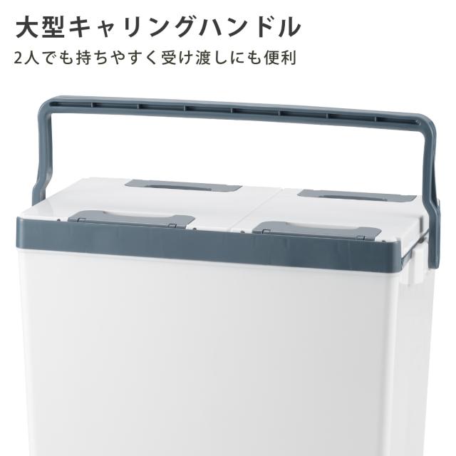 しっかり握れる大きめハンドル付きだから、1人でも2人でもラクに持ち運べて、受け渡しもスムーズです。2人で持てば安全に移動でき、ハンドルが大きいので手が滑りにくく安心です。