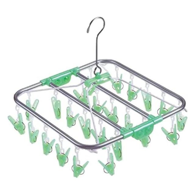 《 LH9706 ランドリーグッズ ランドリー用品 ハンガー 洗濯ばさみ 折り畳み 折り畳みハンガー おりたたみ アルミ 丈夫 軽い 清潔 小物干し タオル たおる 靴下 下着 回転フック 24個 24 外干し グリーン シルバー 使いやすい 便利 1人暮らし 家族 梅雨 花粉 梅雨対策 花粉対策 部屋干し 》