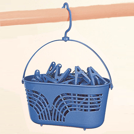 フック付きで竿やロープにも掛けて使える洗濯ピンチかご