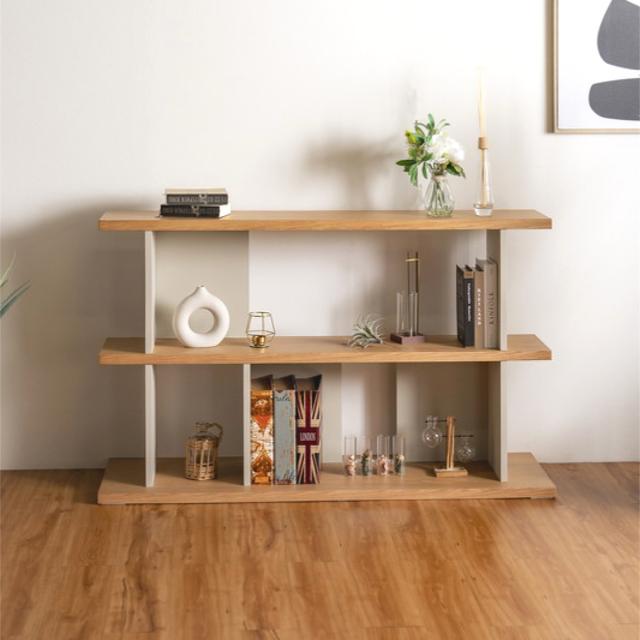 《 LH19295 オープンラック 棚 家具 幅140 奥行40 高さ85 cm センチ 淡色 北欧 ベージュ 茶色 バイカラー コレクション 玄関 リビング 寝室 ホテルライク 木目 木製 おしゃれ お洒落 オシャレ かわいい 可愛い カワイイ 見せる収納 魅せる収納 》