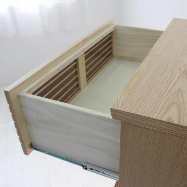 伝統的なロッキング加工で耐久性に優れた引出しは、内部に湿気や虫に強く変形しにくい上質な桐材を使用しており、長く安心してお使いいただけます。