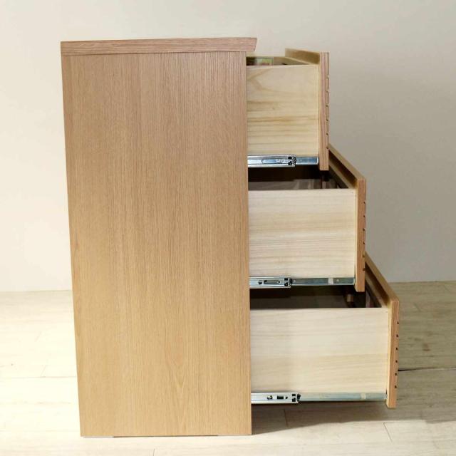 フルスライドレール仕様で引出しが奥までスムーズに開き、衣類の出し入れもラクチンです。重い衣類や厚手のセーターもスムーズに取り出せます。