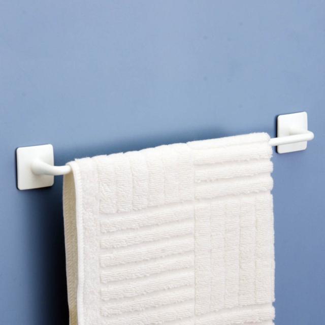 簡単に取り付けできる粘着タイプのタオル掛けです。水にも強い強力粘着でしっかり固定でき、耐荷重は安心の約1kgです。