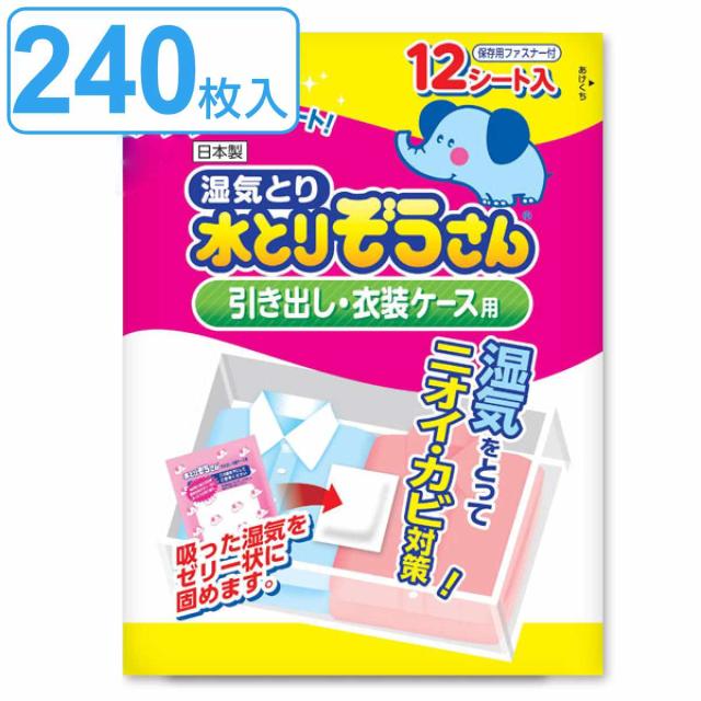 水とりぞうさん 除湿シート 12枚入り×20個セット 引き出し・衣装ケース用 ( 引出し 衣装ケース シート 除湿 防臭 防カビ 吸湿量 50g 240枚 衣類収納 湿気取り 吸湿 衣類 洋服 みずとりぞうさん 水とりゾウさん )