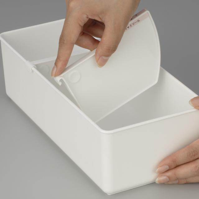 引出し内をいくら片付けてもすぐに散らかってしまう・・・というお悩みにピッタリな仕切りボックスです。整理・収納アドバイザーがメーカーと開発した商品のため、片付けが苦手な方でも簡単に綺麗な状態をキープすることができるよう工夫がされています。