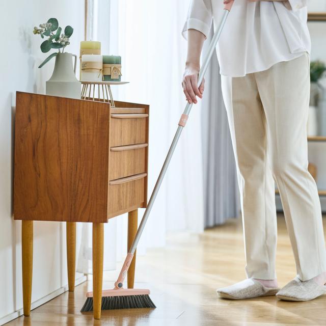 ハンディタイプなので柄が邪魔にならず、シューズボックスや階段など狭い場所のお掃除に便利です。ヘッドが180度可動するので、スキマに使いやすく、柔軟な穂先が掃除機が苦手な隅のゴミも上手く掃き出します。