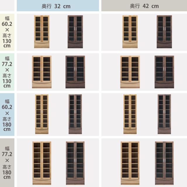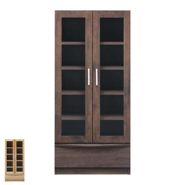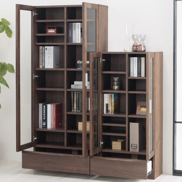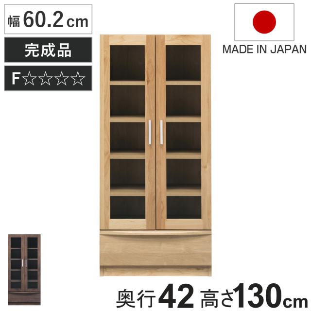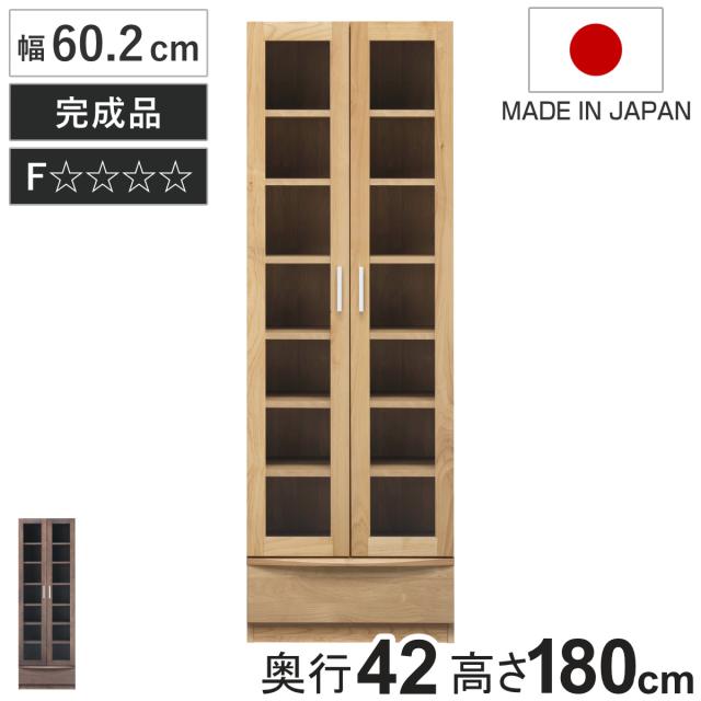 本棚 幅60.2cm 奥行42cm ロータイプ ガラス扉 日本製 完成品 ( 棚 ラック 扉収納 可動棚 収納 アルダー材 書棚 組み合わせ 低ホルムアルデヒド ナチュラル ウォールナット )
