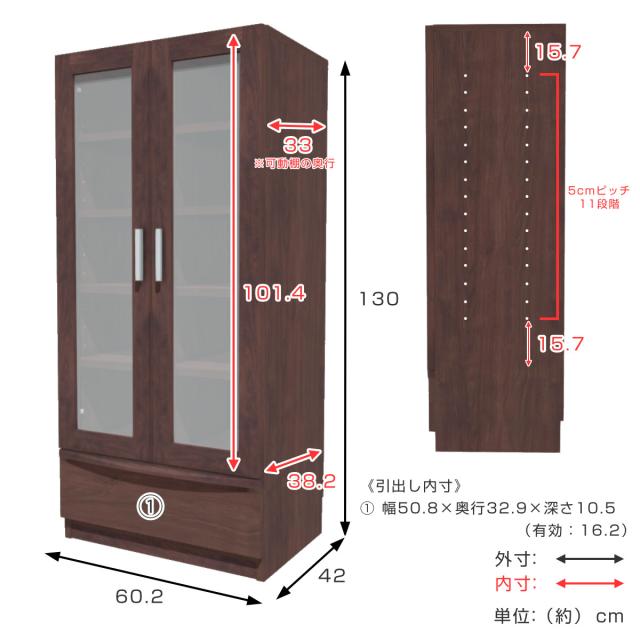 | サイズ | 約 幅60.2×奥行42×高さ130(cm) ※奥行サイズに取っ手は含まず |