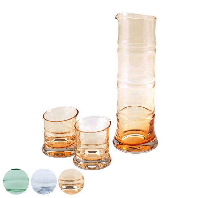 日本の風景の中でも際立つ個性を魅せる竹をモチーフにした、美しいフォルムのガラス酒器「竹-bamboo-」シリーズ。竹らしさが際立つ長片口と大き目のぐいのみの3点セットです。竹の清々しさを感じる青竹色、お酒の色も楽しめる氷竹色、華やかな雰囲気の金竹色の3色からお選びいただけます。雰囲気ある佇まいで晩酌の席を涼し気に演出してくれます。