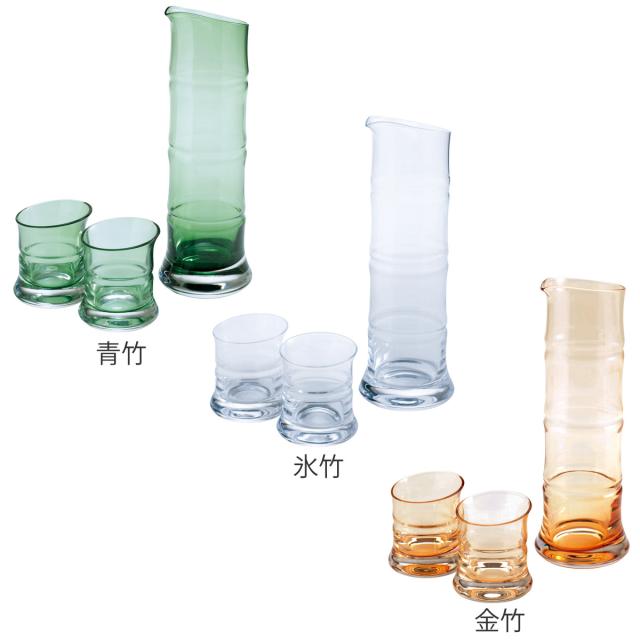 廣田硝子 酒器 酒器揃 大 青竹 金竹 氷竹 ( ガラス 日本製 2合 長注器 ぐいのみ おちょこ お猪口 銚子 徳利 グラス コップ 竹 bamboo おしゃれ ギフト プレゼント 贈り物 )