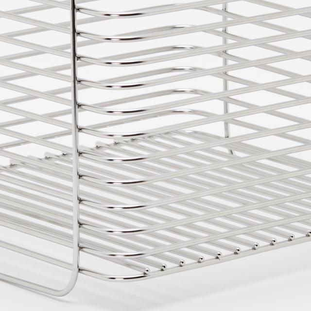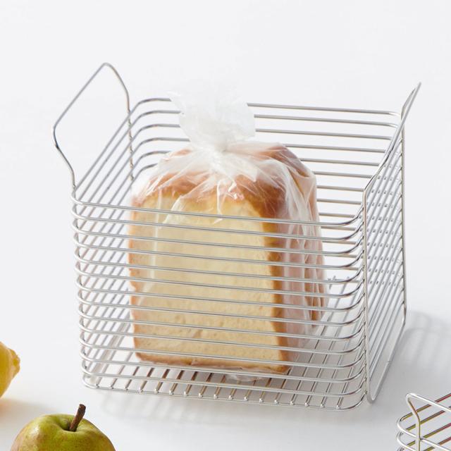 毎日使うキッチン周りの小物をすっきり整理できるシンプルな収納バスケット。パンやコーヒー、調味料やお菓子のストックにも活躍します。ワイヤーデザインで脚が付いているため通気性が良く、圧迫感がないのも嬉しいポイントです。