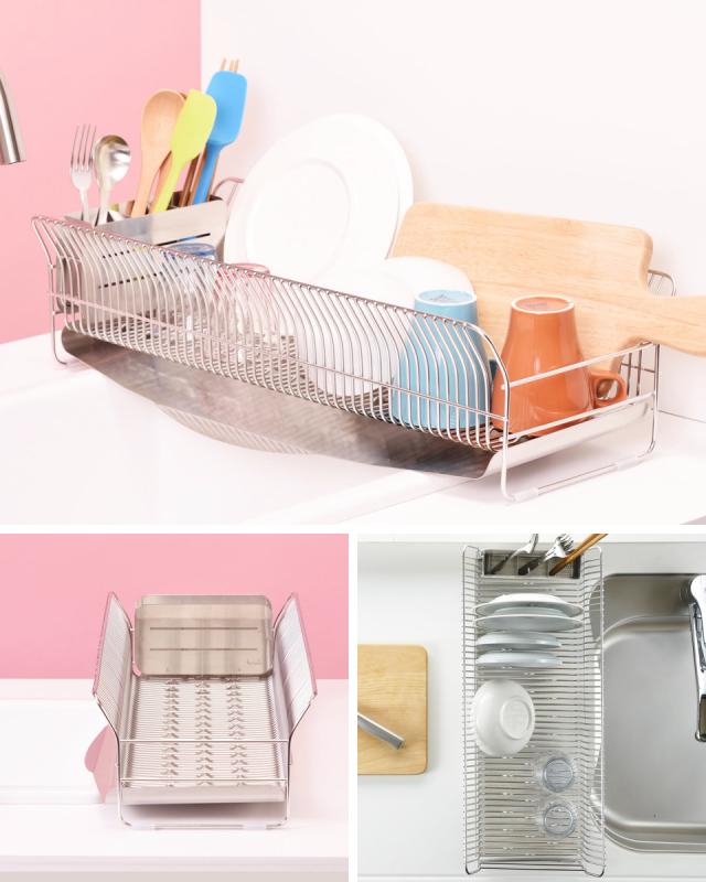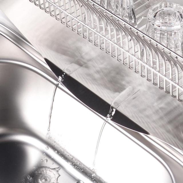 幅約24.5cmのスリムサイズで、シンクまわりの限られたスペースにもすっきり収まります。普段は食洗機を使う方も、サブの水切りラックとして気軽に活用可能。縦長タイプなので、シンクの上をまたいで設置することもできます。