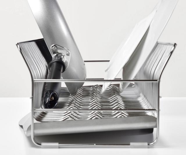 耐荷重は約10kgとスリムなのにしっかりとした収納力。縦横どちらにも効率よく食器を置けるので、大皿やお椀、重たいフライパンやまな板も水切りできます。