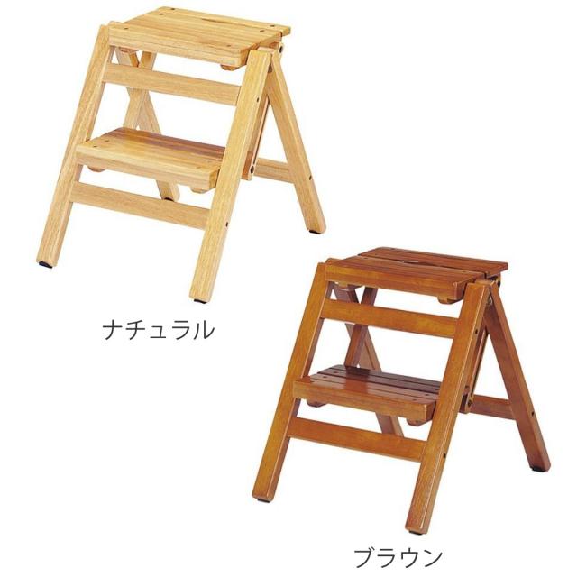 踏み台 幅43cm 2段 折りたたみ 省スペース スリム 子供 天然木 木製 脚立 ステップチェア ( 踏台 椅子 イス 台 ナチュラル 木 ステップ台 スツール 北欧 シンプル )