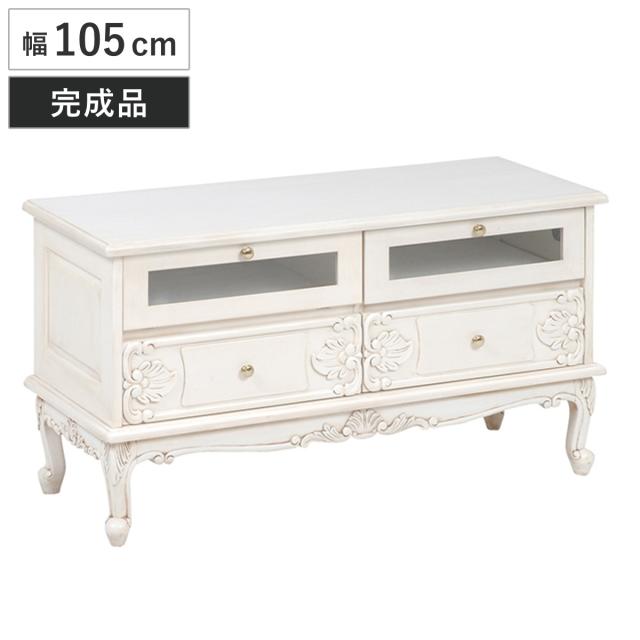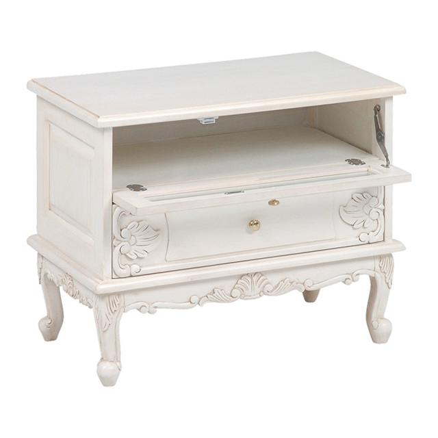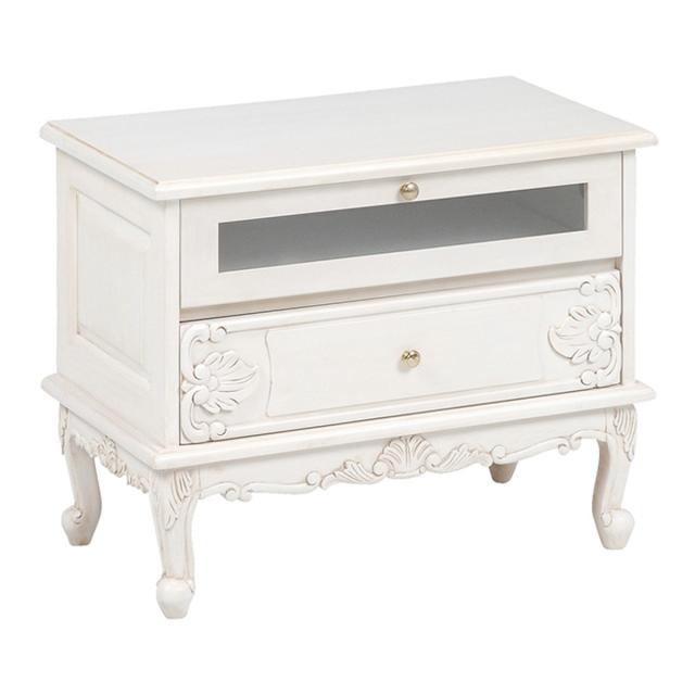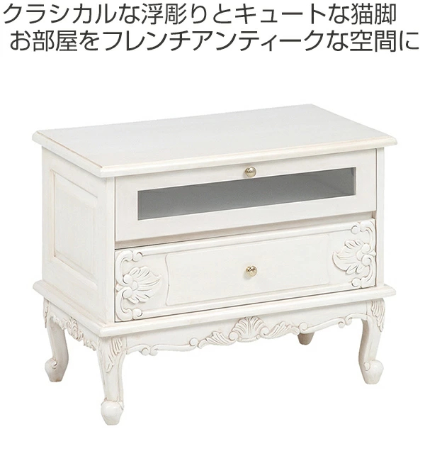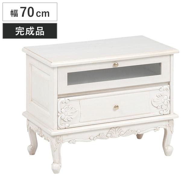 リビングボード 幅70cm 姫系 猫脚 完成品 ヴィオレッタ ( テレビボード ローボード TV台 AVボード フラップ扉 白家具 TVラック テレビラック AV収納 木製 ネコ足 ネコ脚 白 幅70 アンティーク アンティーク調 姫系家具 )