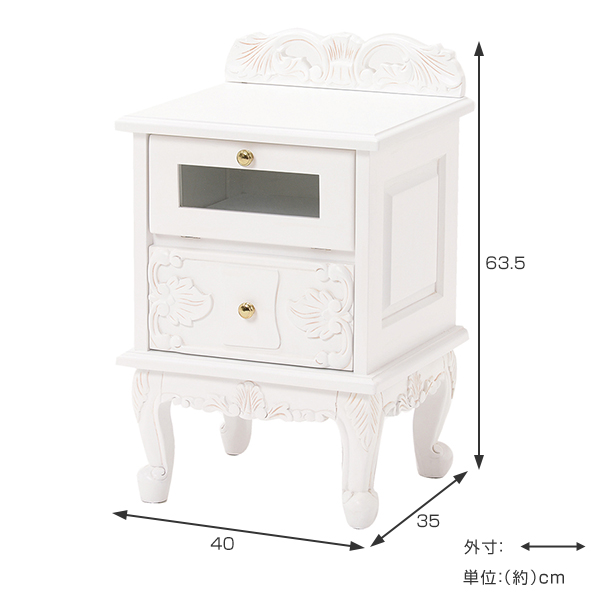 サイドチェスト 姫系 ヴィオレッタ 2段 幅40cm ( チェスト 小物収納 コンパクト ナイトテーブル 電話台 fax台 FAX台 引出し ガラス扉 猫脚 ネコ足 ネコ脚 ホワイト 白 白家具 アンティーク アンティーク調 姫系家具 )