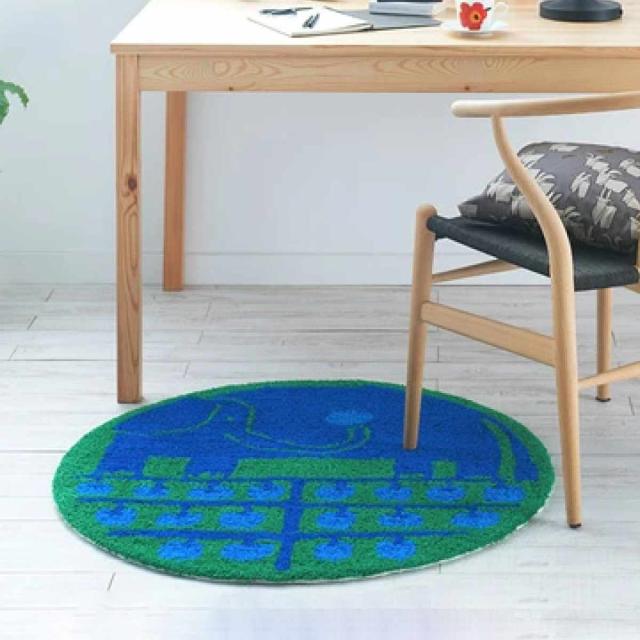 このマットは、テキスタイルデザイナー・鈴木マサル氏が自分のお気に入りの場所に敷くことをイメージしてモチーフの動物とその好物をデザインしています。