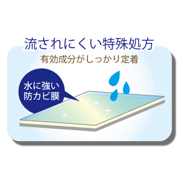●防カビ成分に精油や納豆菌などの安全性の高い成分を採用し、かつ特殊処方により「水に流されにくい」商品に仕上げました。