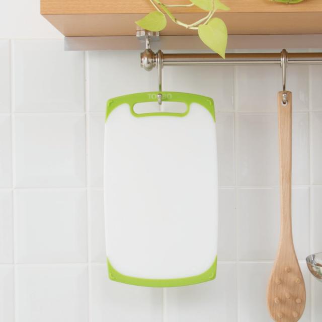 《 LH491 無機抗菌剤練り込み 食洗機OK 食洗機で洗える 卓上サイズ 卓上まな板 すべり止め付き すべりにくい 滑り止め付き 滑りにくい 引っ掛け収納 吊り下げ収納 引っ掛けて収納 吊り下げて収納 白 ホワイト 緑 グリーン ツートーン バイカラー トンボ 新輝合成株式会社 》