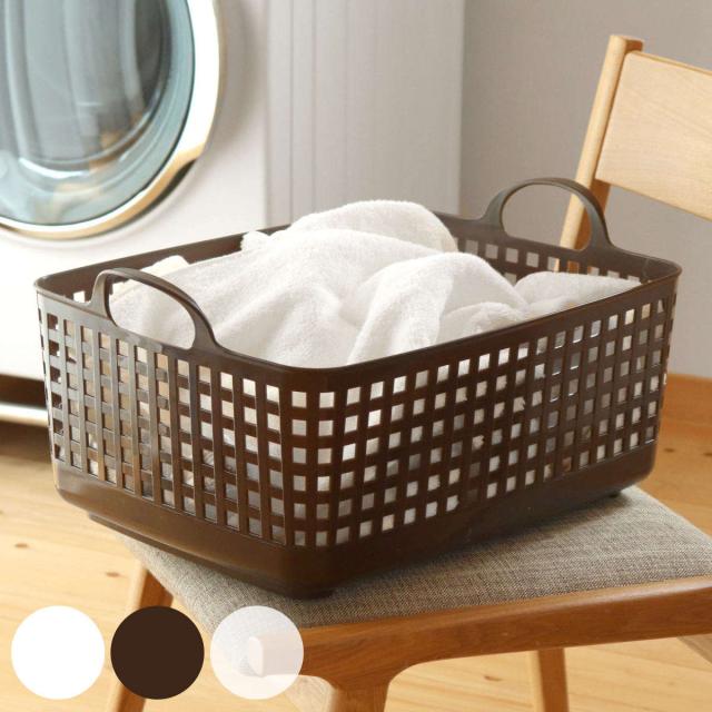ランドリー収納に使えるシンプルで使いやすいバスケットです。プラスチック素材で扱いやすく、格子状なので通気性も抜群です。洗濯物入れとしてはもちろん、洗濯用品の収納、リビングに置いて膝掛けの一時置きやこどものおもちゃ入れとしても活躍します。