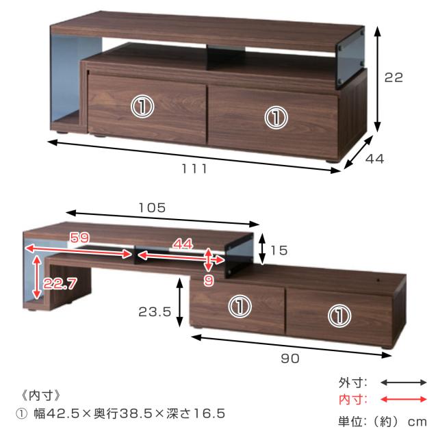 | サイズ | 約 幅105〜181×奥行41×高さ39(cm) |