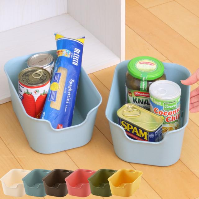 大きく開口した前面は、パッと見た時に中身がわかりやすく、引出しやすい形状です。背面は目立ちにくい小さな持ち手のスッキリしたデザインで、シンプルなインテリアを好まれる方や生活感を見せたくない方に最適です。