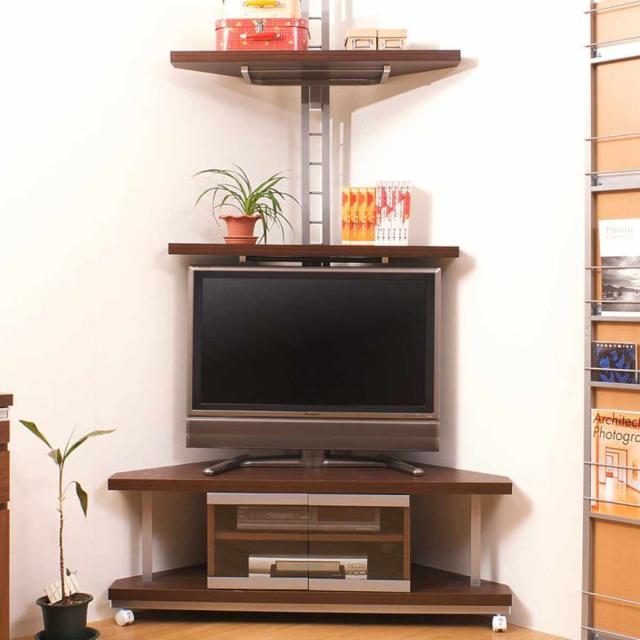 セット品 テレビ台 幅120cm 突っ張り コーナーラック 2段 日本製 ( セット 棚 ラック テレビボード AV収納 テレビラック TV台 TVラック コーナー 可動棚 キャスター付 )