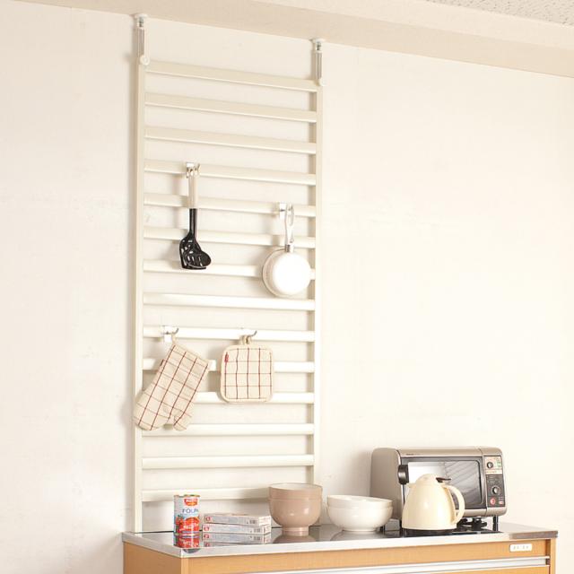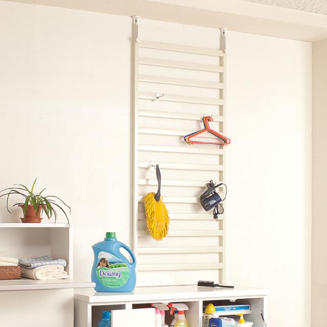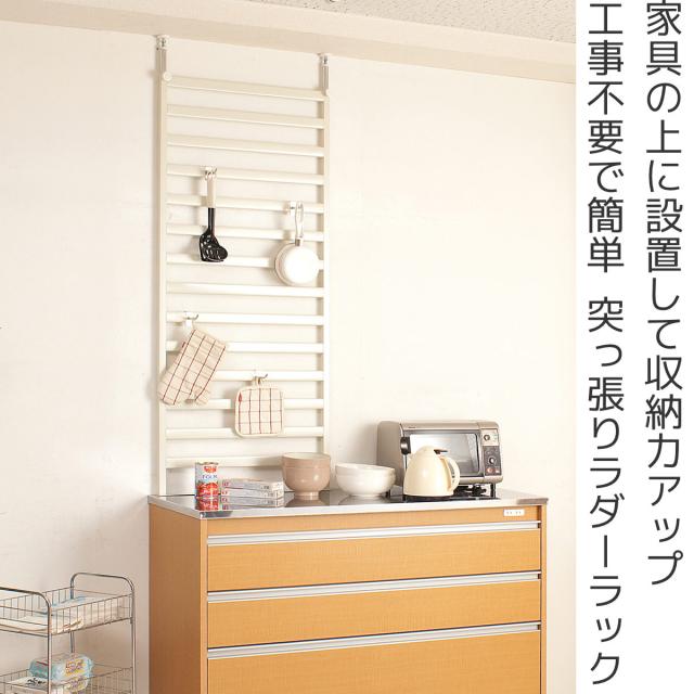 棚上突っ張り ラダーラック 幅60cm フック4個付 日本製 ( 突っ張り パーテーション 棚上収納 ラック ウォールラック 突っ張りラダーラック 壁面ラック 収納ラック 突っ張りラック 間仕切り キャビネット 壁面 棚 収納 )