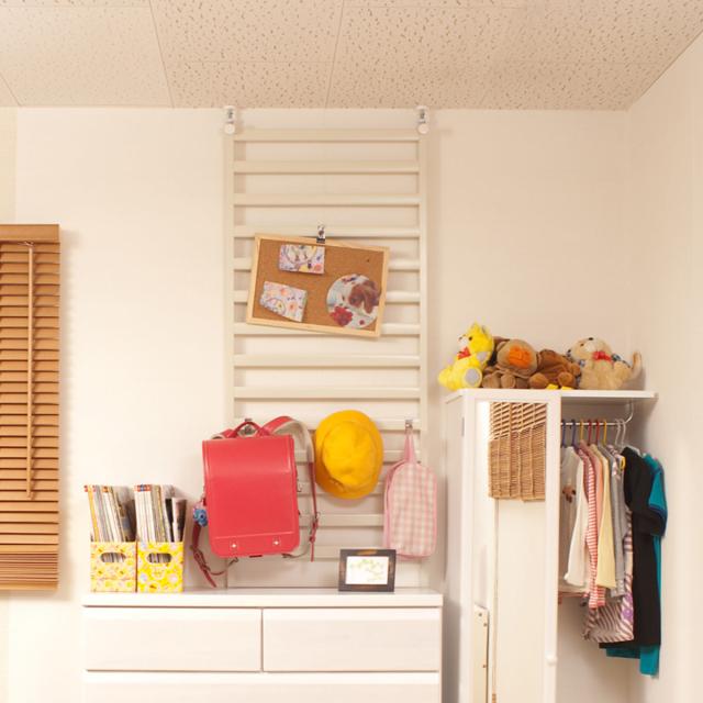 家具上に設置して収納力アップ 工事不要の突っ張りラダーラック
