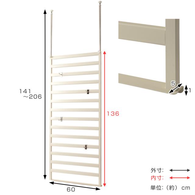 | サイズ | 本体:幅60×奥行5×高さ141〜206cm フック出幅7cm |