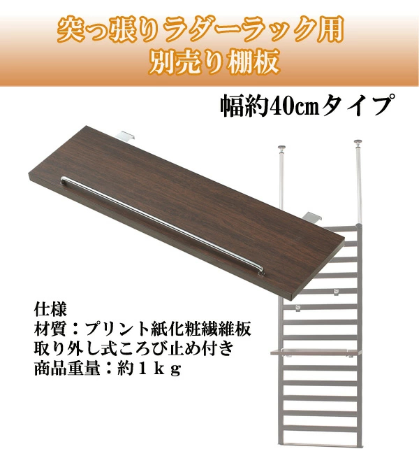 ●簡単設置できる突っ張りラダーラック専用の追加棚板(幅40cm)です。