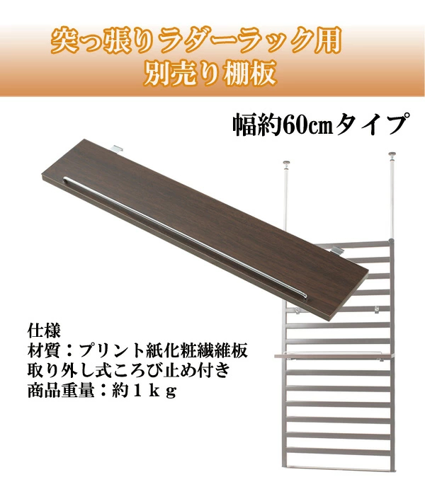 ●簡単設置できる突っ張りラダーラック専用の追加棚板(幅60cm)です。