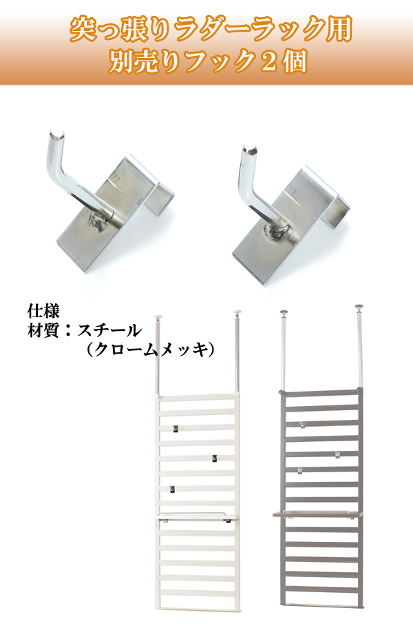 突っ張りラダーラック 追加フック 2個入り ( ラダーラック用 専用パーツ 対応パーツ パーツのみ フック 2個セット 突っ張りラック ラダーラック 専用 対応 追加 パーツ 突っ張り つっぱり 壁面収納 )
