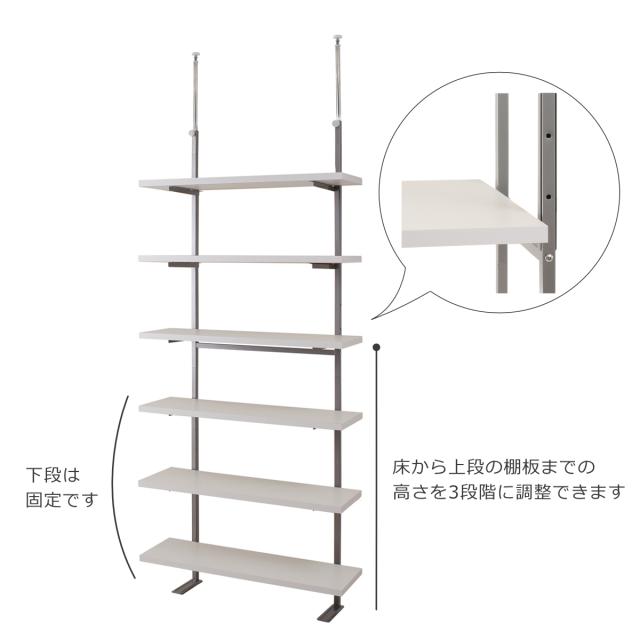 突っ張り 壁面収納ラック 幅90cm 棚板6枚 日本製 ( つっぱり棚 ラック スリム 棚 収納 壁面収納 6段 天井つっぱり 突っ張りウォールラック スチールラック 収納棚 ディスプレイ 本棚 省スペース デスク横 テレビ横 )