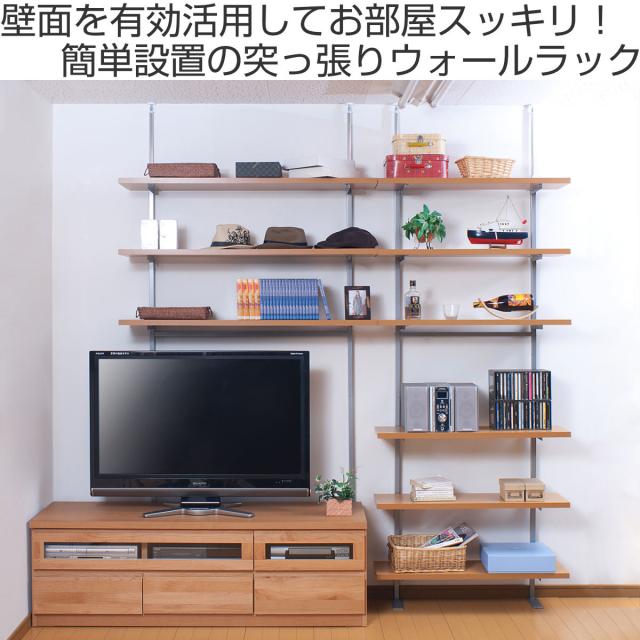 お部屋に備え付けの収納や収納家具を置くスペースがない。そんな時に便利な壁面用突っ張りウォールラックです。壁面の開いたデッドスペースを上手く活用できるので、ワンルームや狭い空間でも収納スペースを作り出すことができます。