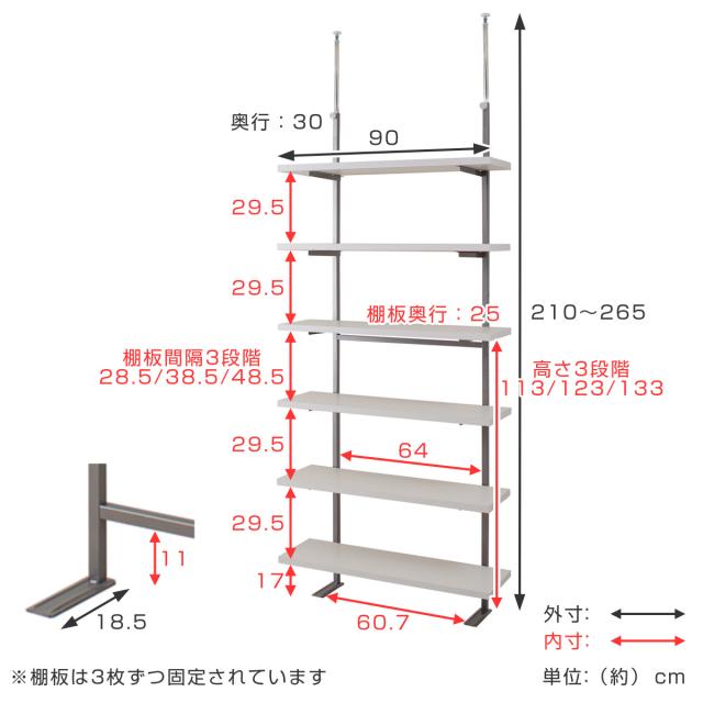 | サイズ | 約 幅90×奥行30×高さ210〜265(cm) |