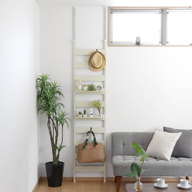 見せながら収納できる突っ張りラダーラック 棚板付き 幅46cm