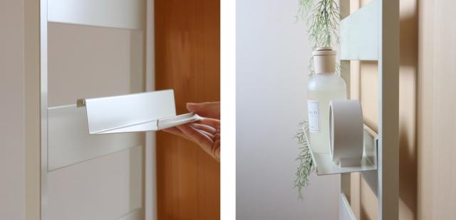 本体にはマグネットが使えるので、デスク周りや作業スペースで使うと書類やメモを留められて便利です。バッグや上着を掛けたり、趣味用のラックとして使うのもおすすめです。