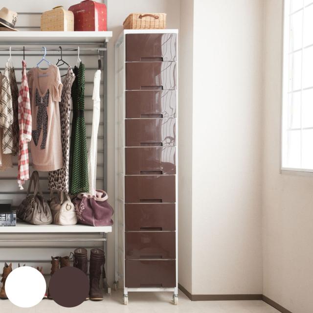 衣装ケース 大量収納プラスチックチェスト 9段 ( 幅36×奥行48×高さ181cm 収納ボックス 引き出し ハイタイプ 収納ケース チェスト タンス 衣類収納 大容量 キャスター付き リビング収納 クローゼット ランドリー 日本製 スリム )