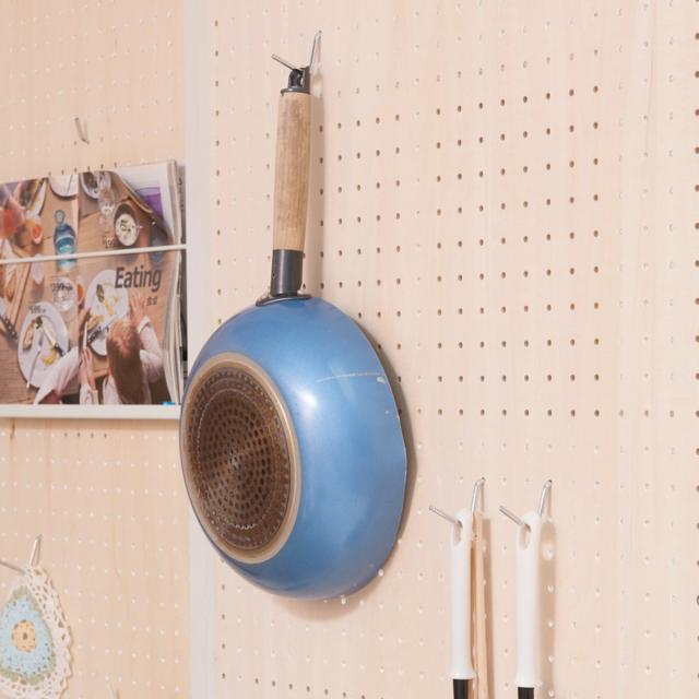 壁に穴を開けるのは躊躇しますが、有孔ボードは穴を利用してアレンジが可能です。有孔ボード用のフックやハンガーで、吊るしたり掛けたりして収納することができます。工夫次第でショップのようにレイアウトもできます。有孔ボードでおしゃれな空間をつくってみませんか?