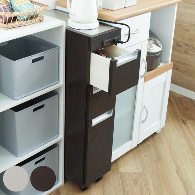 キッチンカウンター スリムカウンター ステンレストップ 幅20.5cm ( キッチンワゴン キッチン 収納 キッチンラック スリム 完成品 日本製 キッチン収納 ワゴン 隙間 すき間 省スペース 白 ブラウン キャスター付き コンセント付き )