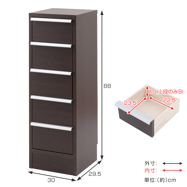 カウンター下収納 チェスト 5段 スタイリッシュ 幅30cm ( タンス 収納 窓下収納 たんす 収納棚 収納家具 小物収納 引き出し 完成品 日本製 木製 薄型 収納ケース )