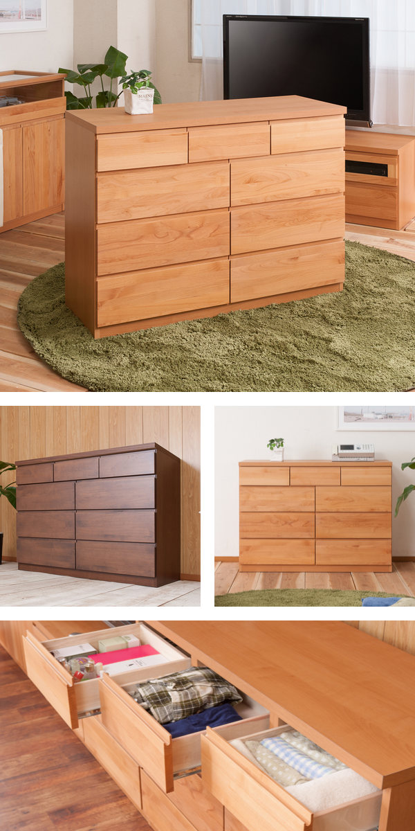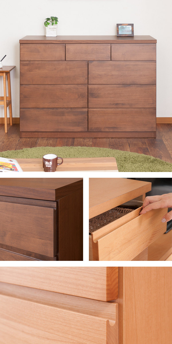 チェスト 4段 9杯 天然木 アルダー材 幅119.5cm ( 衣類収納 タンス 収納 木製 日本製 完成品 リビング収納 引き出し 国産 無垢材 たんす 箪笥 スライドレール 整理タンス チェストタンス 完成品)