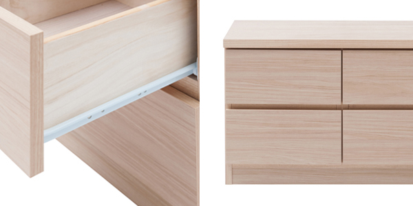 狭いリビングや寝室を広く見せるならロータイプ家具がおすすめです。小分けされた引き出しは、細かく分けて収納できるので整理整頓がしやすくなります。