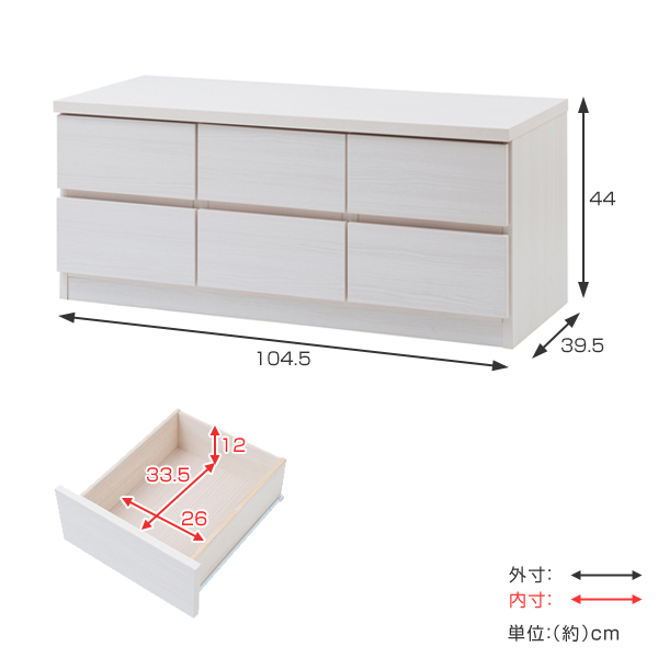 ローチェスト 2段3列 ベンチチェスト 木目調 約幅105cm ( 完成品 国産 チェスト ロータイプ テレビ台 TV台 ディスプレイ 収納 リビング収納 小物整理 シンプル 幅105 105センチ 105cm ナチュラル ホワイト 引出し )