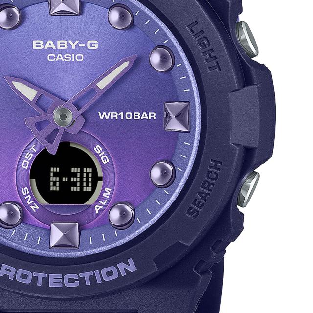 アクティブな女性のためのカジュアルウオッチBABY-Gから、カラフルでアクティブなスタイルを楽しむティーンにぴったりのモデルです。