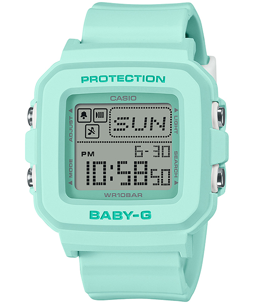 アクティブな女性のためのカジュアルウオッチBABY-Gから、スクエアフェイスのデジタルウオッチです。