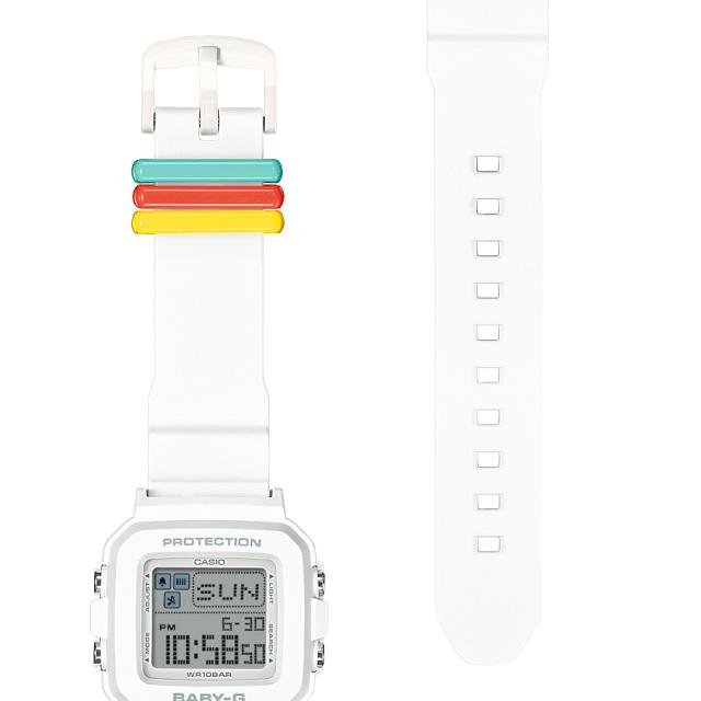 本体とバンドループのカラーは、ブルー×クール系(BGD-10L-2)、ピンク×ウォーム系(BGD-10L-4)、ホワイト×レインボーカラー(BGD10L-7)をラインアップしました。バンドループは各モデルソリッドカラー7本、スケルトン2本が含まれており、カラーだけでなく質感のバリエーションも豊富です。その日の気分やファッションにあわせて手元にアクセントをプラスし、自分らしく個性を演出できます。
