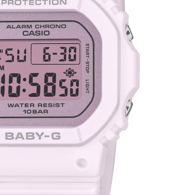 アクティブな女性に向けた耐衝撃・カジュアルウオッチBABY-Gから、バレエコアスタイルを取り入れた、光沢感のある文字板が特徴のモデルです。ベースモデルには、コンパクトな角型フォルムが特徴のBGD-565を採用。淡く優しいカラーをベースに、文字板にはパール塗装を施し、フェミニンで上品な印象に仕上げました。耐衝撃構造や10気圧防水機能など、日常のアクティブシーンに欠かせない頼れる機能も充実。日常生活はもちろん、スポーツやレジャーシーンも安心。アクティブな毎日を応援します。